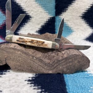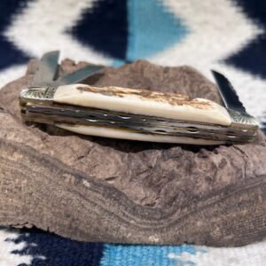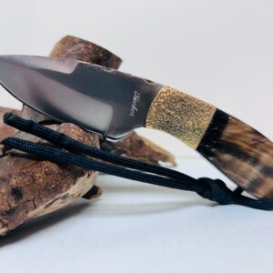 This one of kind Giraffe Bone knife was handmade by master knife maker Gary Tucker. Gary has made a ATS 34 stainless steel blade  he has been making knives for over 30 years. So don’t wait get yours today. The driftwood stand is included to display your knife.
