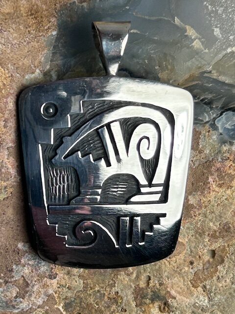 Hopi artist Trinidad Lucas  has handmade this  bear pendant hand cut from sterling silver.
